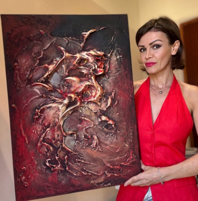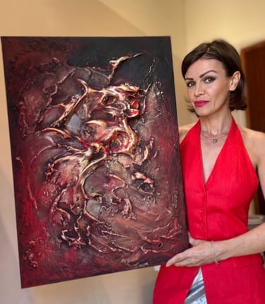 Je suis une femme qui a trouvé sa voix dans le silence de la toile. Une artiste convaincue que tout sentiment humain est sacré et mérite d’être incarné dans la beauté.